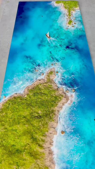 3D Ocean Resin Art: Handmade Beach Landscape Decor